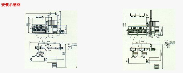 風機可擺放于室外或自建消音室內(nèi)。平面布置可根據(jù)具體情況酌情調(diào)整。